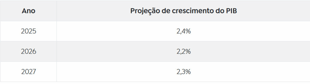 O Ministério da Fazenda tem projeções mais otimistas, com alta de 2,3% em 2025 e de 2,4% em 2026, de acordo com o Boletim MacroFiscal de setembro.